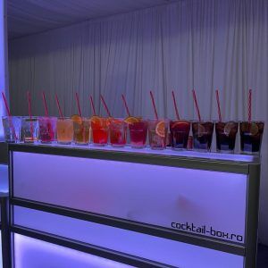 Suc portocale, Suc ananas, Lichior piersici, Rom
